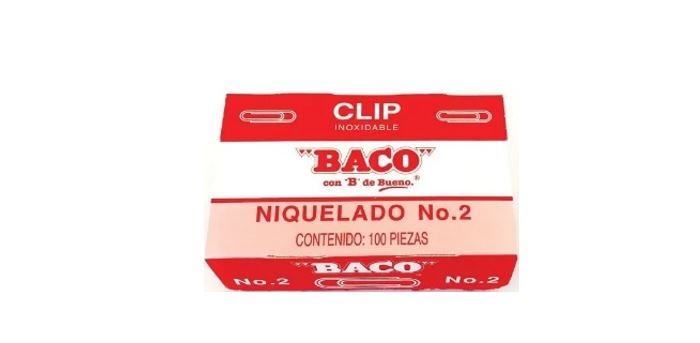 Clip. Clip BACO #2 No de Parte 12043. Caja con 100 Piezas Niqueladas. –